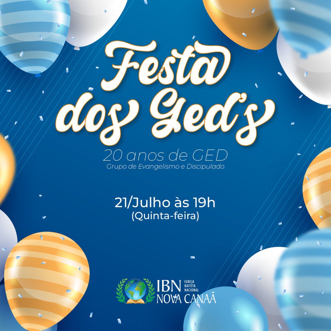 21 de Julho | às 19h | 20 Anos de Implantação da Visão | Grupo de Evangelismo e Discipulado
