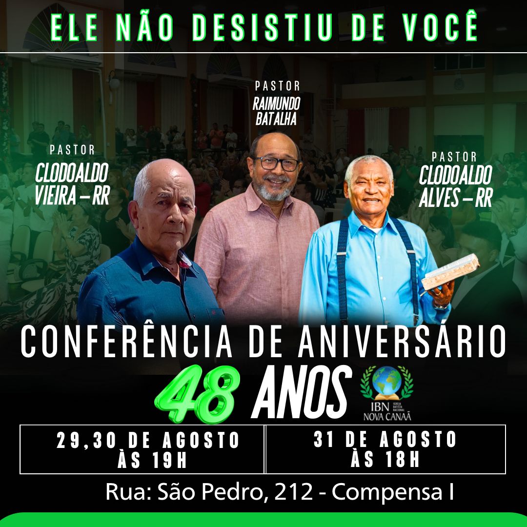 Igreja Batista Nacional Nova Canaã Rua São Pedro, 212, Compensa 1, Manaus, Amazonas, BrasilLIDERANÇA NOVA CANAÃ CONVOCADA!