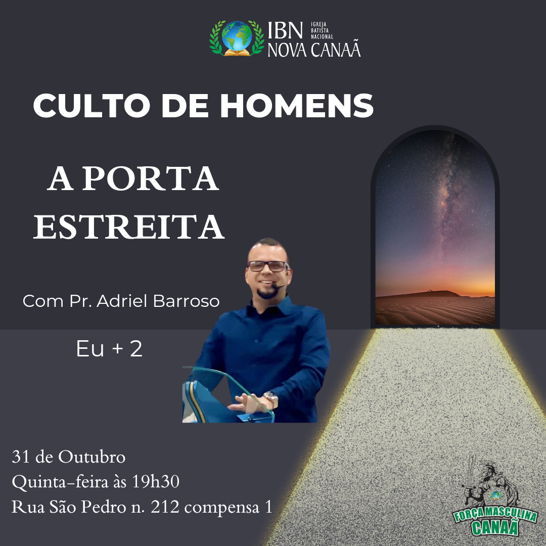 FORÇA MASCULINA CANAÃ 26 de Outubro, 2024 @ 8:00 - 31 de Outubro, 2024 @ 22:00 Igreja Batista Nacional Nova Canaã Rua São Pedro, 212, Compensa 1, Manaus, Amazonas, Brasil